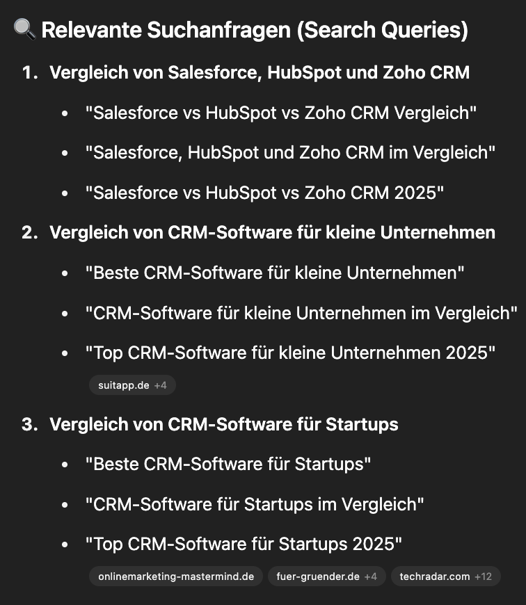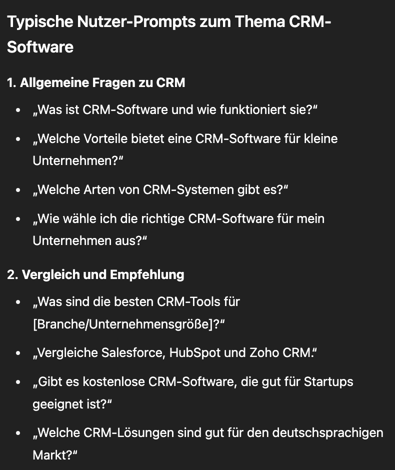 - Nutzeranfrage: “Beste CRM-Software für kleine Unternehmen”