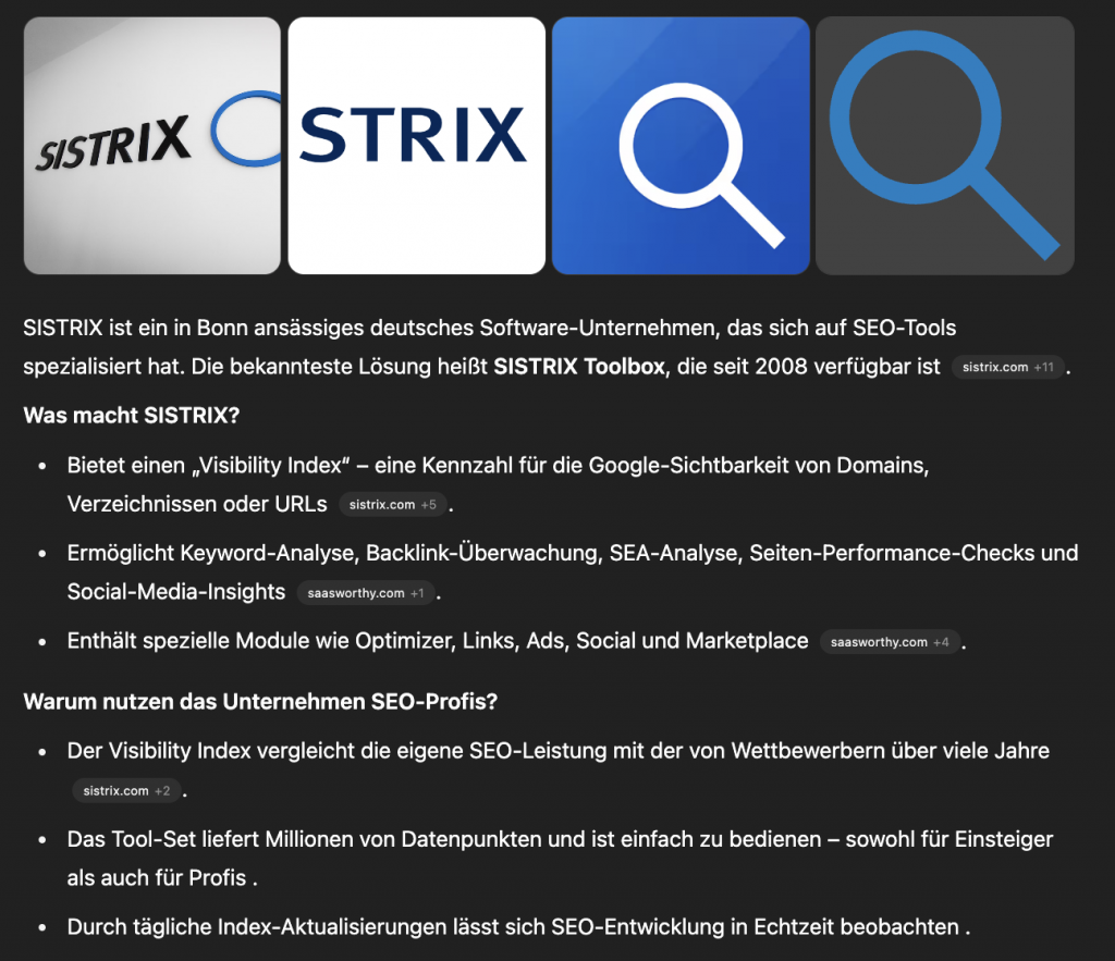 ChatGPT nutzt beim Grounding ähnliche Mechanismen wie Gemini: Query-Rewriting, Websuche, Einbindung externer Inhalte. Wenn Sprachmodelle wie Gemini / ChatGPT gezielt auf Webinhalte zurückgreifen, um fundierte Antworten zu generieren, steigt die Bedeutung gut auffindbarer, hochwertiger Inhalte. Denn Seiten, die gut ranken, haben eine höhere Chance als „Grounding-Quelle“ genutzt zu werden.